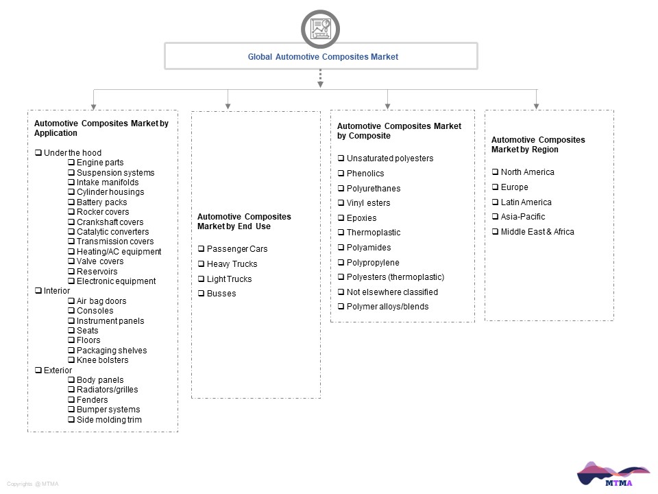 - Based on End Use, the Global Automotive Composites market is segmented into