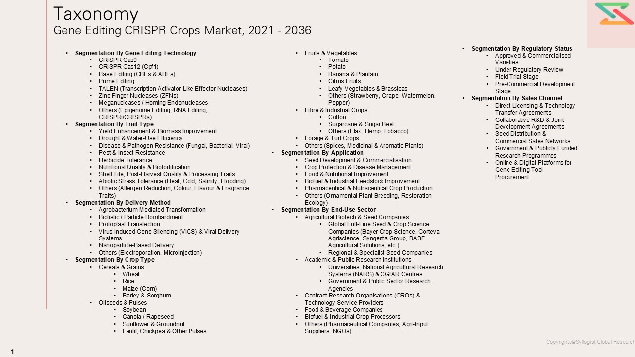 - Tier-1 Global Integrated Crop Science & Seed Companies with In-House Gene Editing Platforms