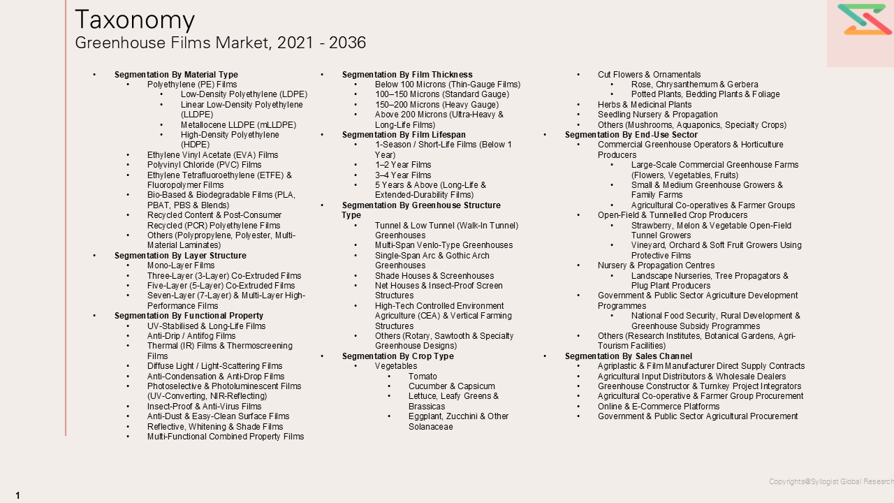 - Tier-1 Global Integrated Agriplastic & Greenhouse Film Manufacturers (Politiv, Ginegar, Solarig, Armando Alvarez, Haygrove, Plastika Kritis, etc.)