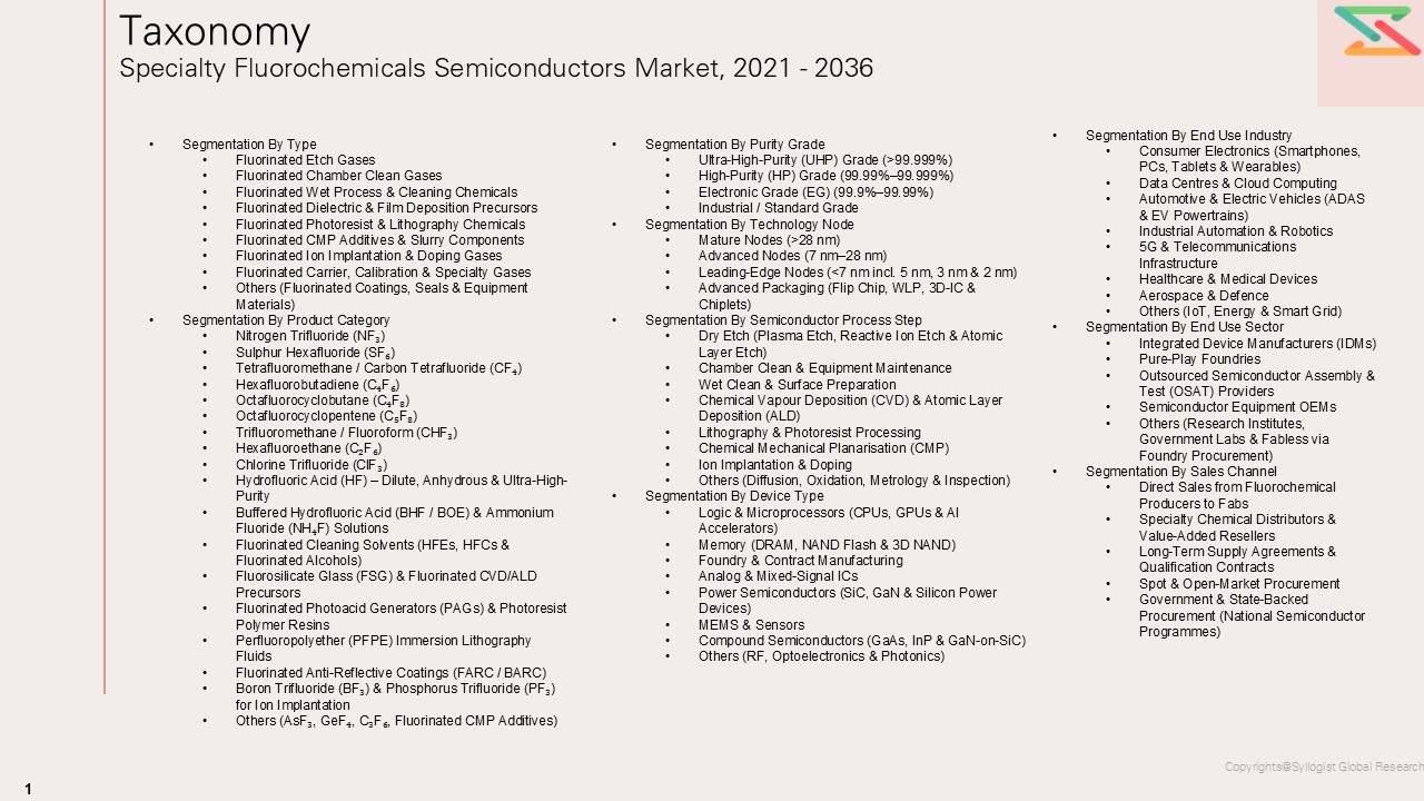 - Global Specialty Fluorochemicals for Semiconductors Market Assessment, 2021-2036